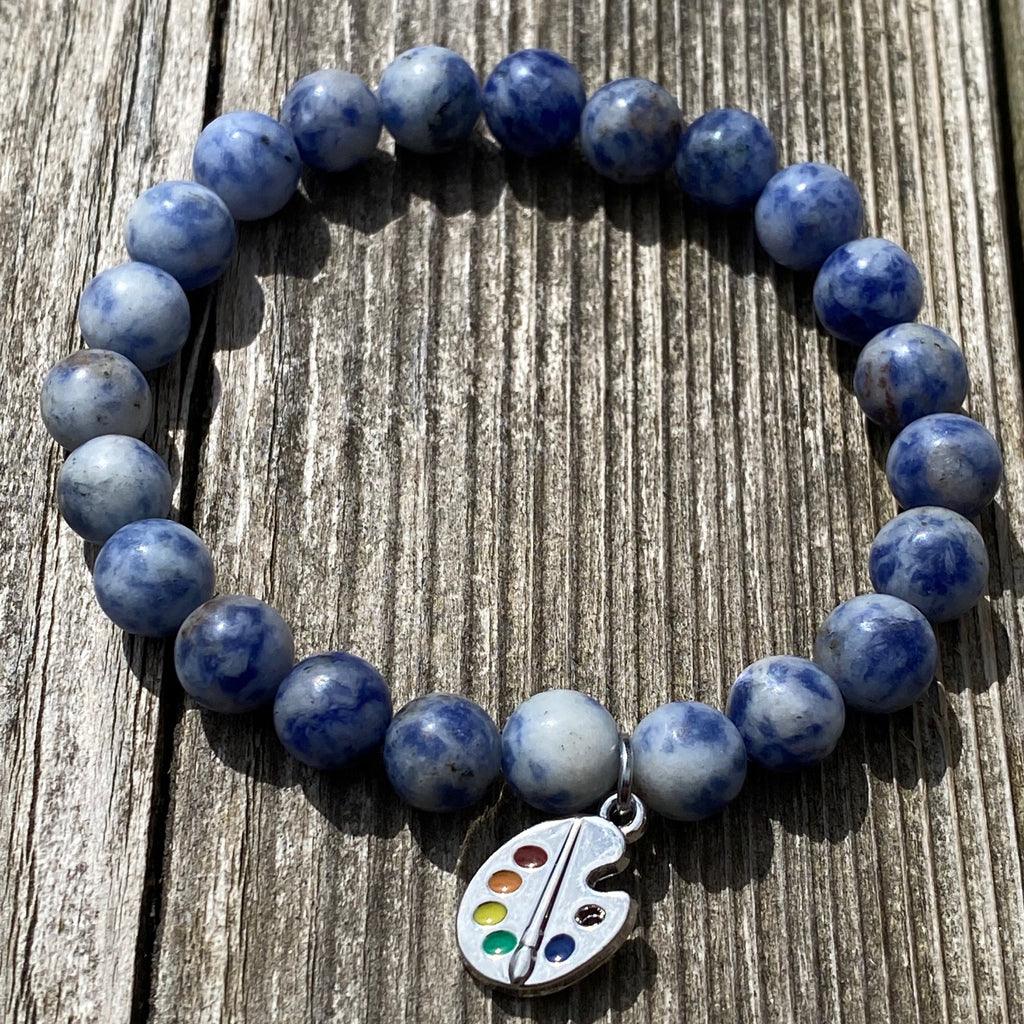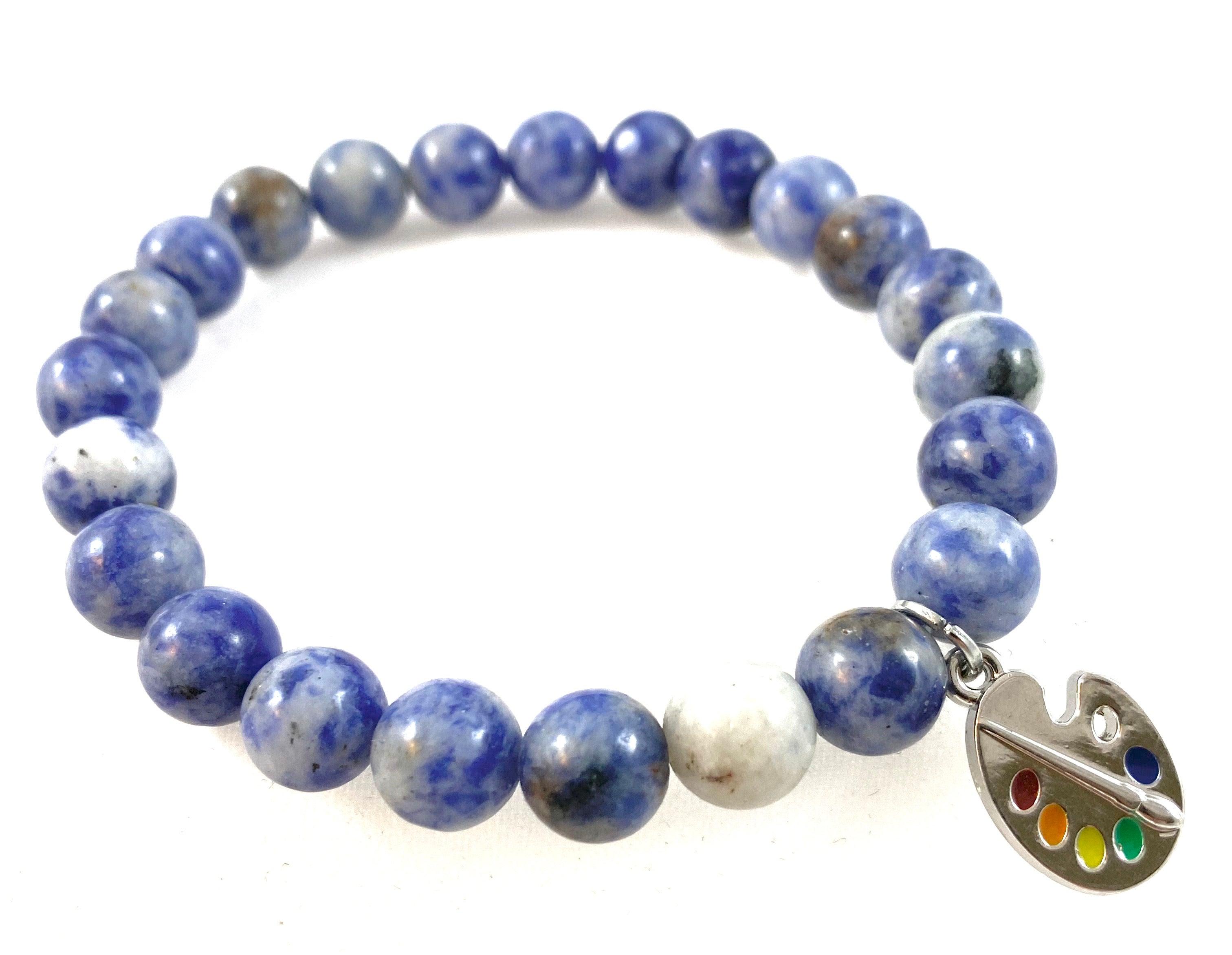 - 8mm Blue Spot Jaspis Steinarmband an Stretchkordel