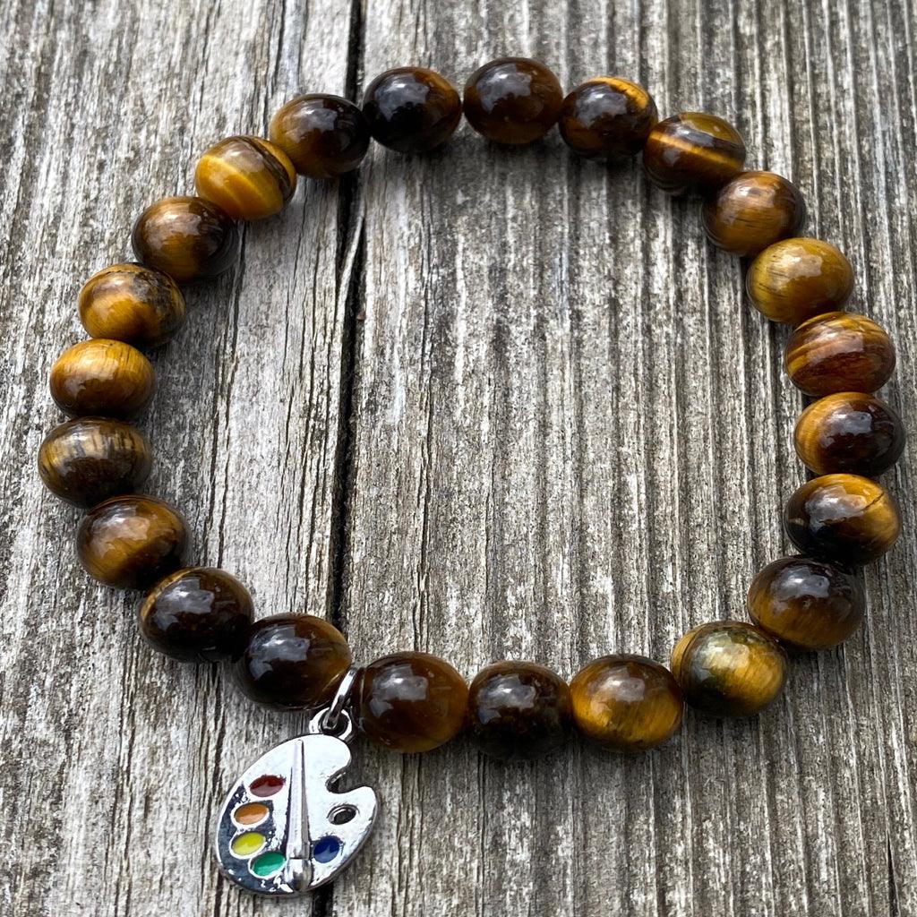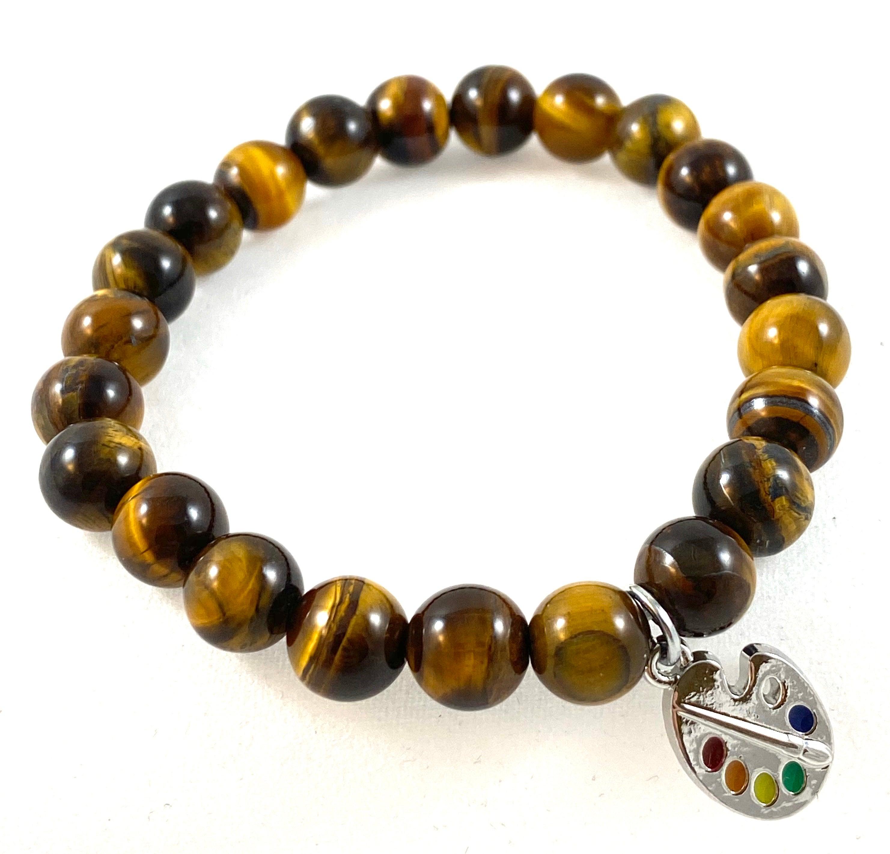 - Bracelet perle oeil de tigre 8 mm sur cordon extensible