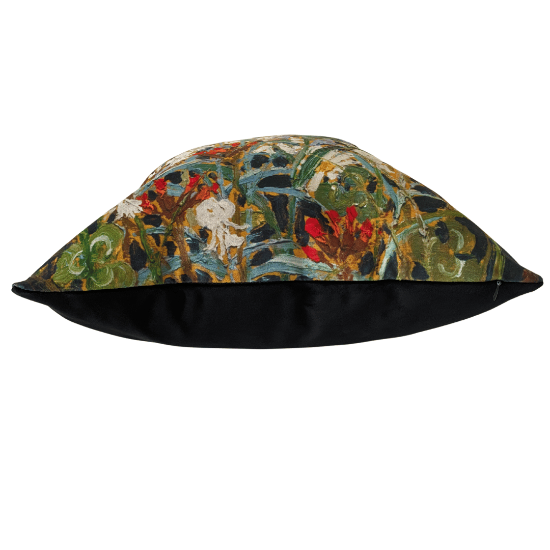 Il dipinto di Tom Thomson, Fiori selvatici, posizionato su una morbida federa in vellutino 100% poliestere. Prodotto in Canada. Colori brillanti, morbidi e resistenti. Questo è un bellissimo pezzo d'accento. Questo dipinto fa parte della McMichael Gallery di Kleinburg, Collection. I colori scompaiono e le pennellate vengono catturate perfettamente sul cuscino. Spedito con la tua scelta di cuscino in poliestere/cotone o un cuscino in piumino sintetico. (Abbiamo scelto un'alternativa in piumino per soddisfare le allergie) Il piumino sintetico è più costoso dei nostri cuscini in poliestere/cotone. La forma in poliestere/cotone è più rigida dell'inserto in piumino sintetico. La custodia è lavabile in lavatrice. Chiusura con cerniera.