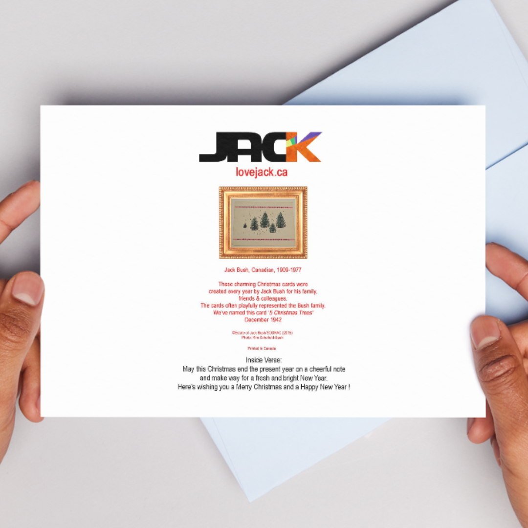 - Charming cards featuring replica drawings from vintage Jack Bush Christmas Cards