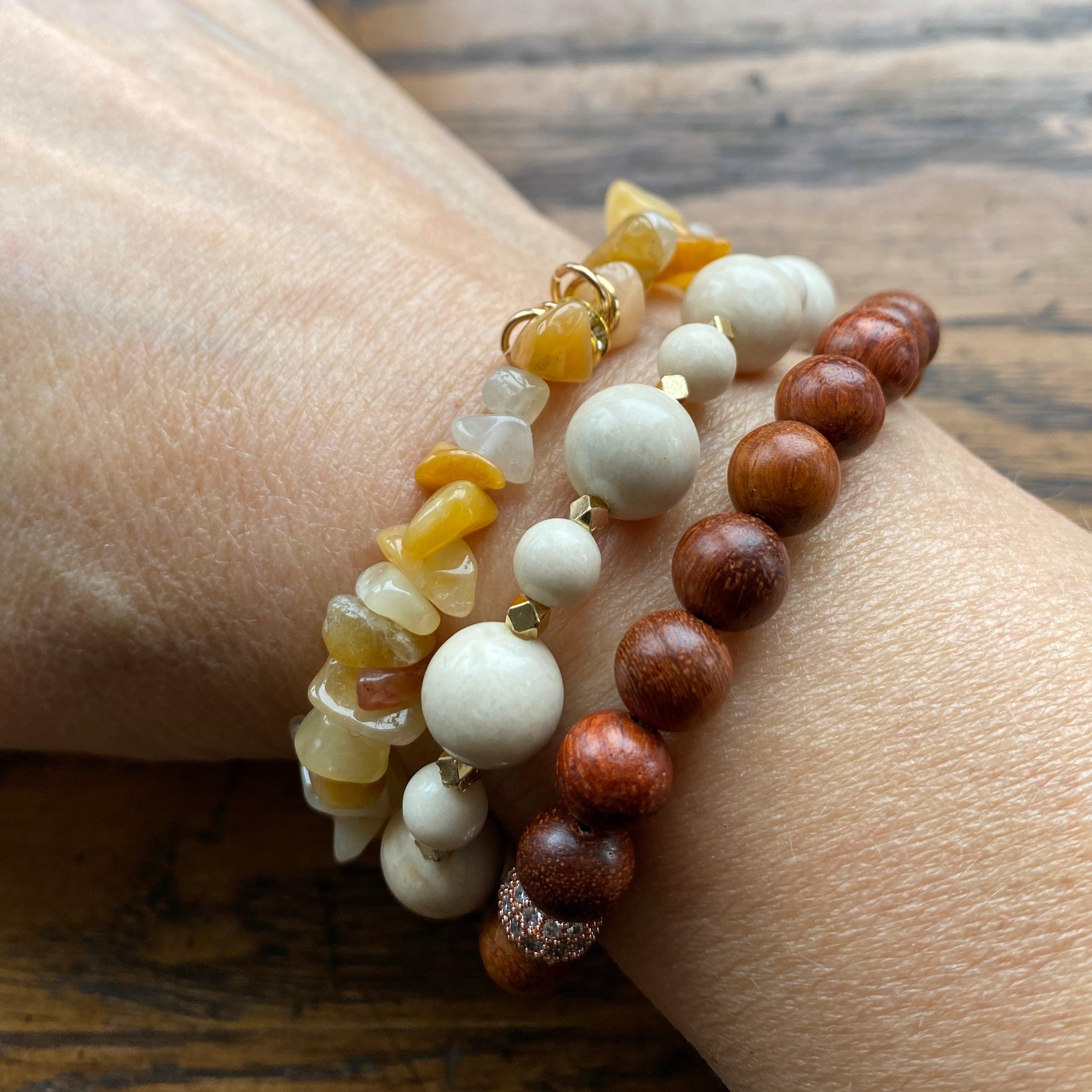 - Natural Yellow Aventurine Natura lchip bead bracelet on stretch cord